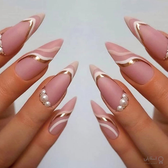 ناخنهای مرواریدی رنگارنگ صنعت مد و فشن و هنر دیزاین ناخن را به سطحی کاملاً جدید آورده است. شما میتوانید تقریباً هر چیزی را با هم ترکیب کنید و شاهکاری بینظیر بسازید. ناخنهای خنجری جسورانه و جذاب هستند و هچکس نمیتواند این را انکار کند. ناخنهای مرواریدی از زیباترین رنگ لاک ناخن در مد و فشن هستند با این حال، جلوه لطیف و زنانگی که پوشش لهجه مروارید به ارمغان میآورد را نمیتوان نادیده گرفت. این نمونه عالی از داشتن مرواریدهای سفید و صورتی در یک طرح واحد است. اگر فکر میکنید که درخواست ناخنهای مروارید آبی غیرممکن است زیرا مروارید طبیعی وجود ندارد که بتوان از آن دور کرد. با این حال، پس از کاوش در این هنر ناخن پرجنب و جوش دو بار فکر خواهید کرد. به نظر میرسد که میتوانید هر سایه مرواریدی را که دلتان می خواهد بدست آورید!